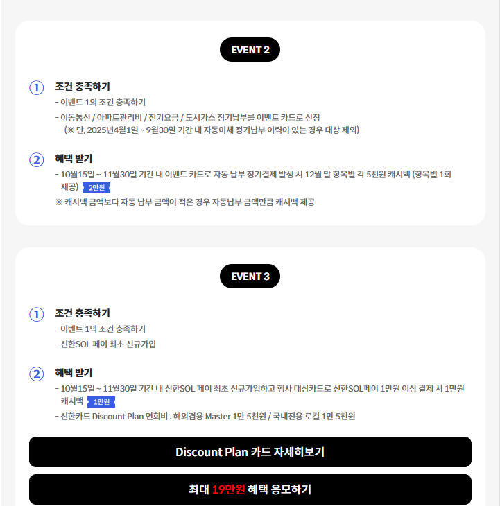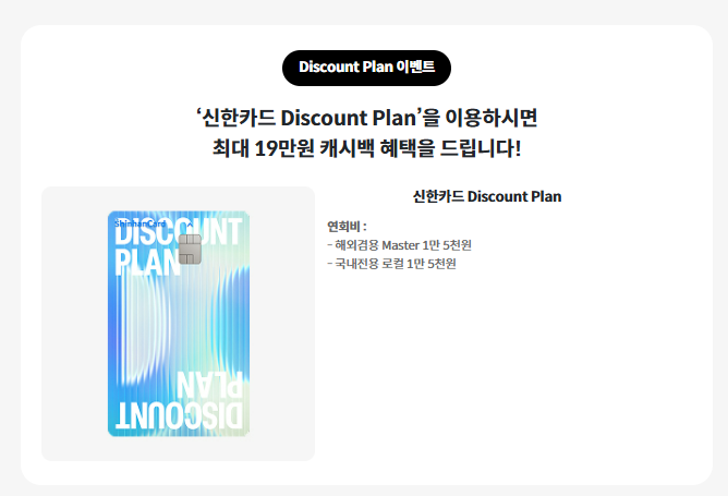 💎 신한카드 Discount Plan — 최대 19만원 캐시백
