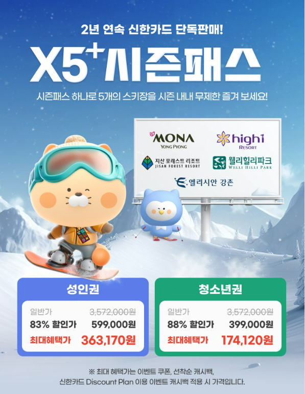 🎿 X5+ 시즌패스 25/26 혜택 총정리 — 이용권 구성부터 카드 이벤트까지 한눈에 보기