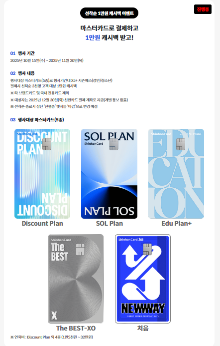 ※ 타 브랜드 카드 및 국내 전용카드는 제외되며, 선착순 종료 시 ‘진행중’ 표시는 ‘마감’으로 변경됩니다.