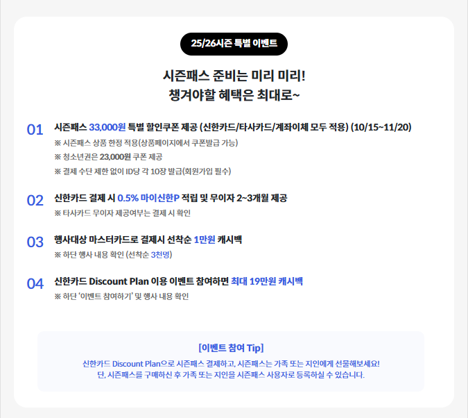 X5 시즌권 신한카드 Discount Plan 이벤트 완벽 정리 – 최대 19만 원 캐시백 받는 법