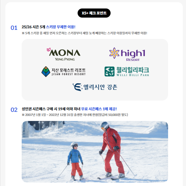 🎿 X5+ 시즌패스 25/26 혜택 총정리 — 이용권 구성부터 카드 이벤트까지 한눈에 보기